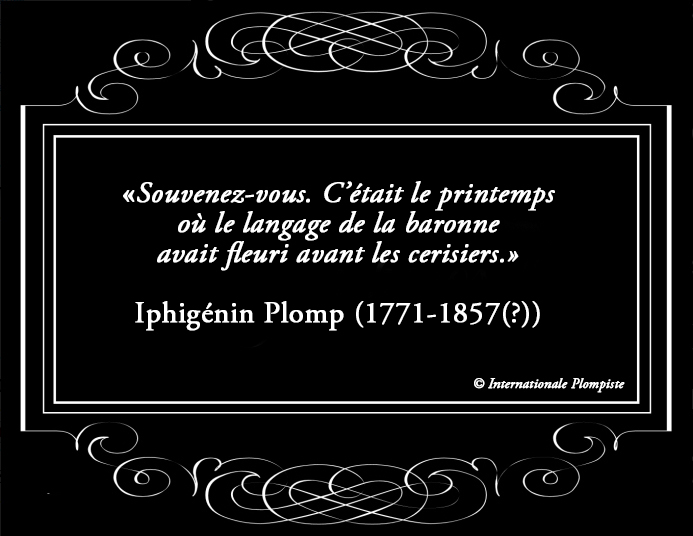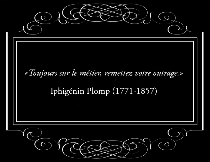 À l’occasion du 250e anniversaire de sa naissance, Iphigénin Plomp, né à la fin du siècle des Lumières, aurait dû être fêté comme il se doit (en grandes plompes ? NDLR) un peu partout en France. En raison de la pandémie, de nombreuses rencontres et manifestations ont été annulées. C’est bien dommage. Nous avons donc décidé de pallier ce manque en publiant régulièrement dans nos pages des pensées et aphorismes de ce grand esprit si français.